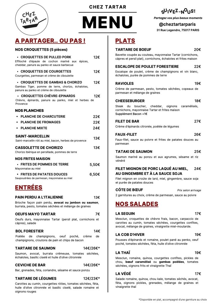 Que vous soyez du 17ᵉ ou de passage à Paris, Chez Tartar est l’adresse incontournable pour conjuguer authenticité, saveurs et convivialité.